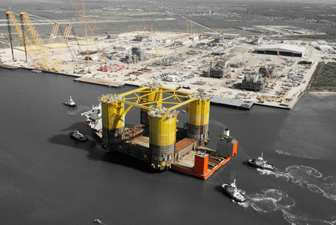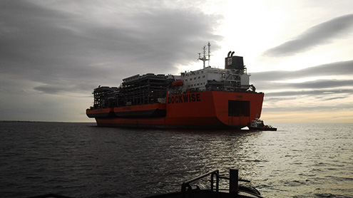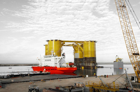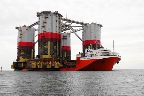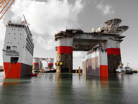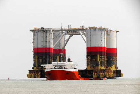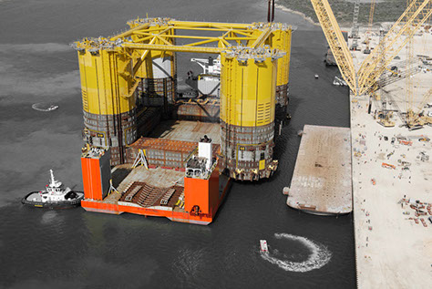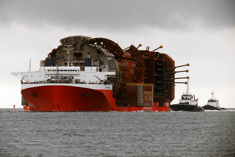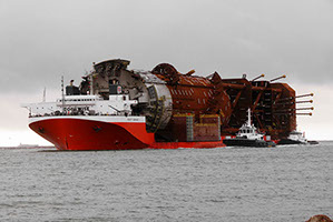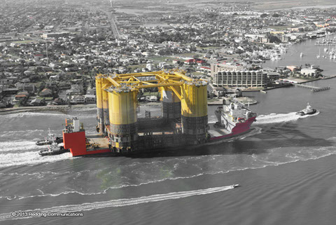 The M/V Treasure sails from Theodore laden with the “WC600” jacket and the “Jawhara 5” jack-up rig