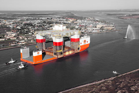 The Dockwise Vanguard on her maiden voyage, arriving at Corpus Christi, TX to discharge her cargo
